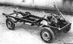 Szkielet pojazdu stanowiła podłużnicowa rama o konstrukcji spawanej. Podłużnice wykonano z zamkniętego profilu prostokątnego o wymiarach 100x50x3 mm. Zawieszenie kół przednich było niezależne. Koła jezdne prowadzono na podwójnych wahaczach poprzecznych nierównej długości. Sprężyny śrubowe przedniego zawieszenia Warszawy były wspomagane drugą parą sprężyn mocowaną w ich wnętrzu. Zastosowano hydrauliczne amortyzatory ramieniowe oraz stabilizator skrętny. W zależnym zawieszeniu tylnym użyto dwóch wzdłużnych resorów piórowych oraz amortyzatorów ramieniowych. Tarczowe koła jezdne o średnicy 16" były zaopatrzone ogumienie dętkowe o wymiarach 6.00-16''- W układzie kierowniczym zastosowano globoidalną przekładnię ślimakową i jednoczęściowy wał kierownicy. Hamulec zasadniczy sterowany hydraulicznie był jednoobwodowy. Bębnowe hamulce kół przednich i tylnych przejęto z osobowej Warszawy. Hamulec pomocniczy typu mechanicznego działał na szczęki hamulcowe kół tylnych.