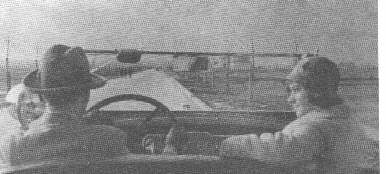 04- Gen. Józef Haller za kierownicą prototypu. Po lewj Tadeusz Tański, po prawej mjr. Mrowiński, mjr inż Kazimierz Mayer, inż. Władysław Mrajski , major ze świty generała, inż. Adrian Samborski.